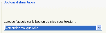| Véritable paradoxe, pour arrêter votre ordinateur, vous devez dérouler le menu Démarrer de Windows. Pour vous affranchir de cette étape, pour arrêter votre ordinateur plus rapidement et plus logiquement, et pour épater vos amis, il vous est possible d'arrêter votre ordinateur grâce au bouton sur l'unité centrale. Pour cela, vous devez configurer correctement Windows XP. Déroulez le menu Démarrer , puis Paramètres , et cliquez sur Panneau de configuration . Double cliquez ensuite sur l'icône Options d'alimentation . Une nouvelle fenêtre apparaît à l'écran, cliquez sur l'onglet Avancé . Dans la rubrique Boutons d'alimentation , sélectionnez Demandez moi que faire dans la liste déroulante Lorsque j'appuie sur le bouton de mise sous tension .